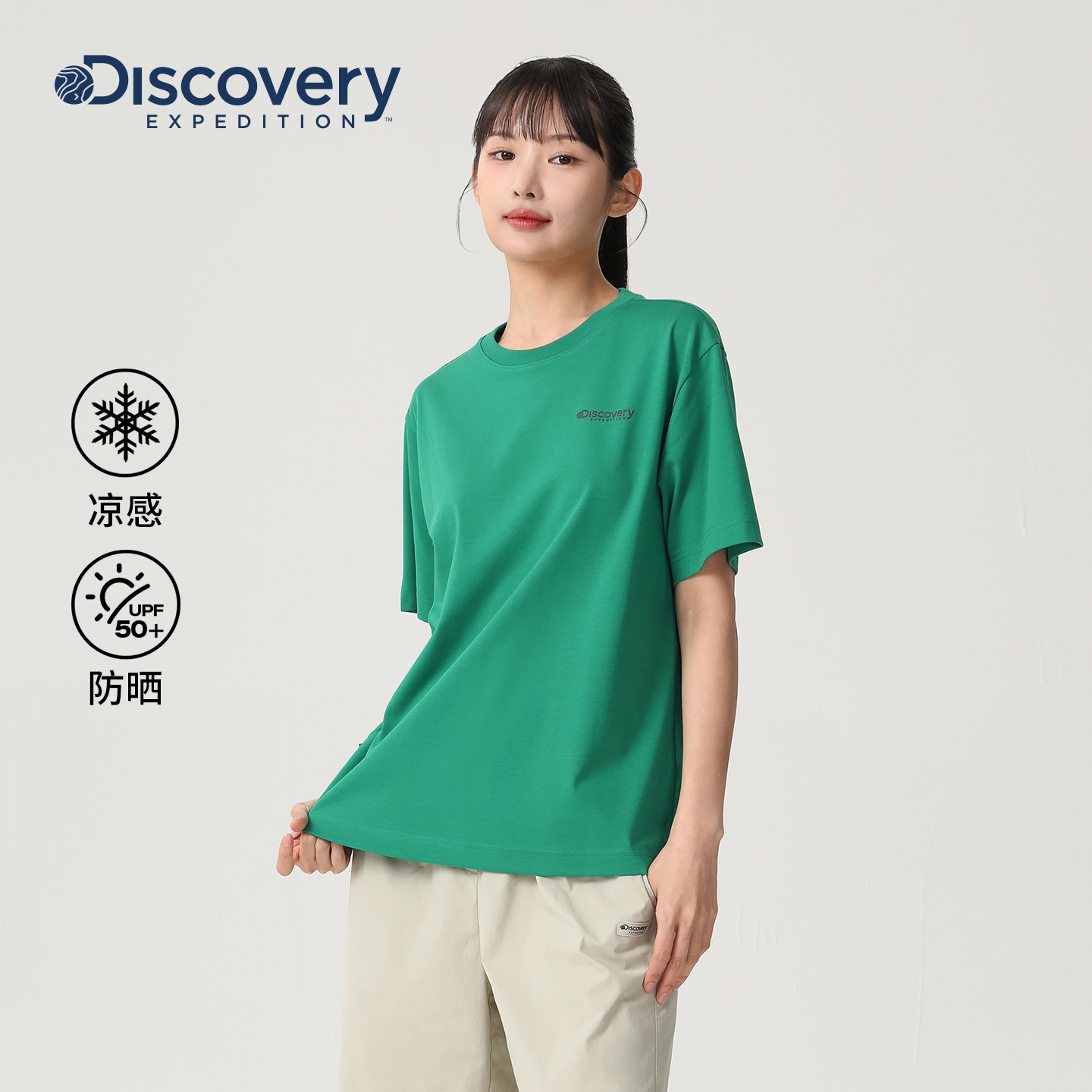 Discovery探索户外运动露营凉感防晒印花短袖 T恤男女情侣春夏