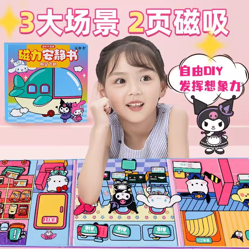 安静书新款 女孩救护车飞机磁力免裁剪磁力贴磁吸磁铁diy儿童玩具