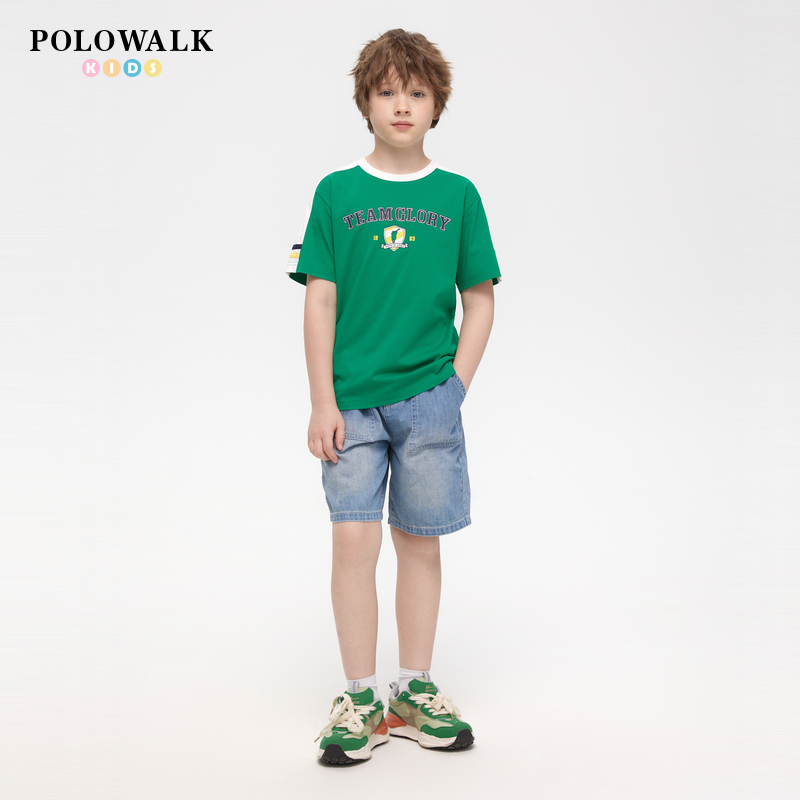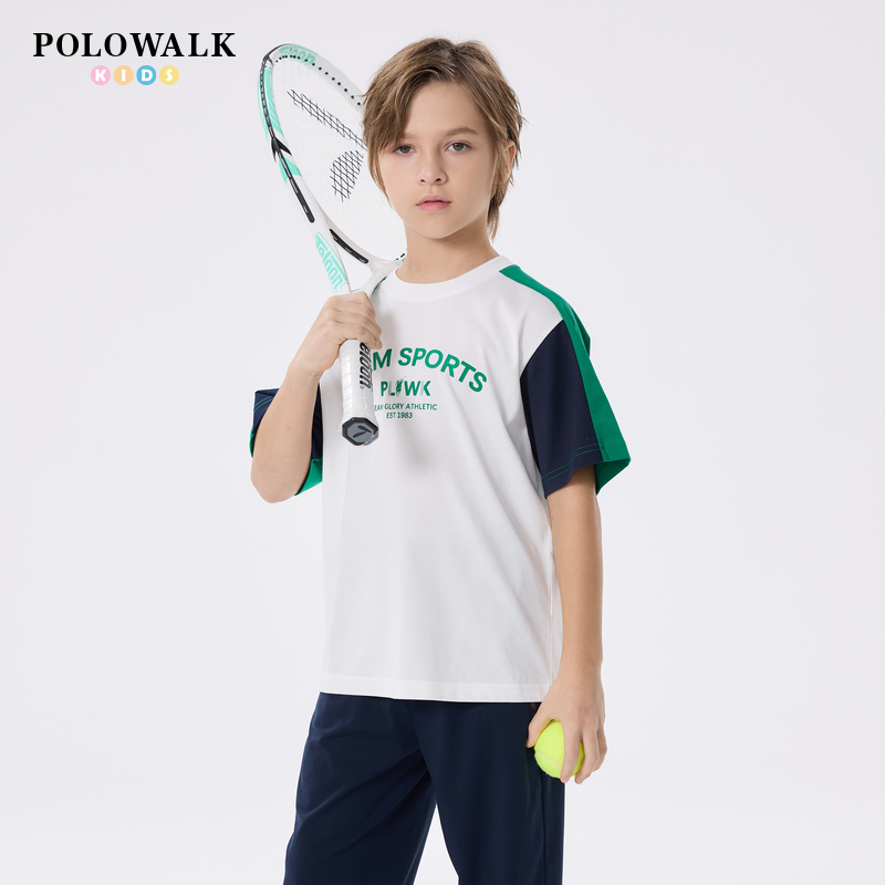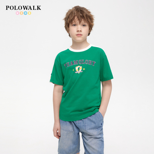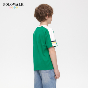 T恤2025夏新品 男童短袖 POLOWALK童装 圆领休闲上衣 莱赛尔面料