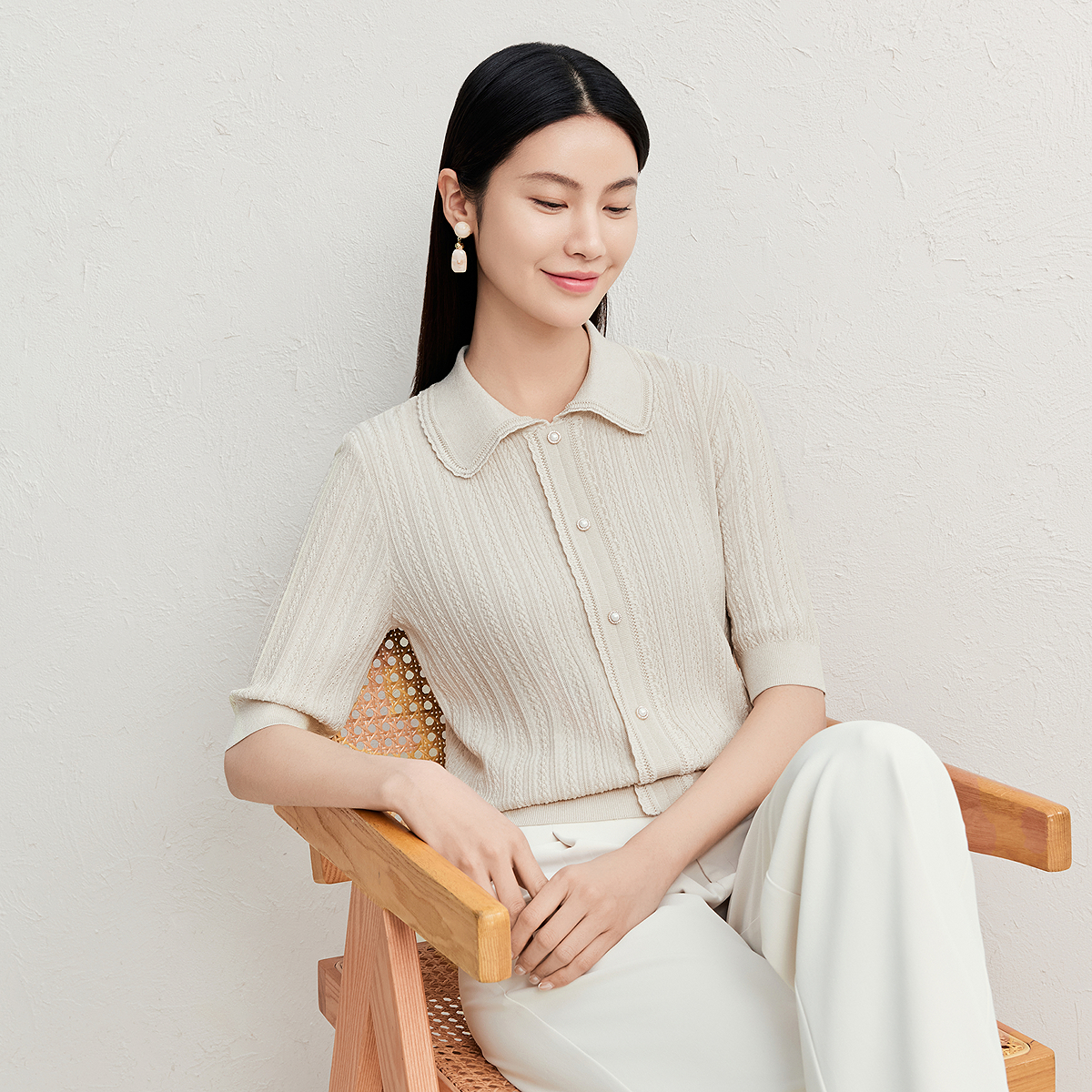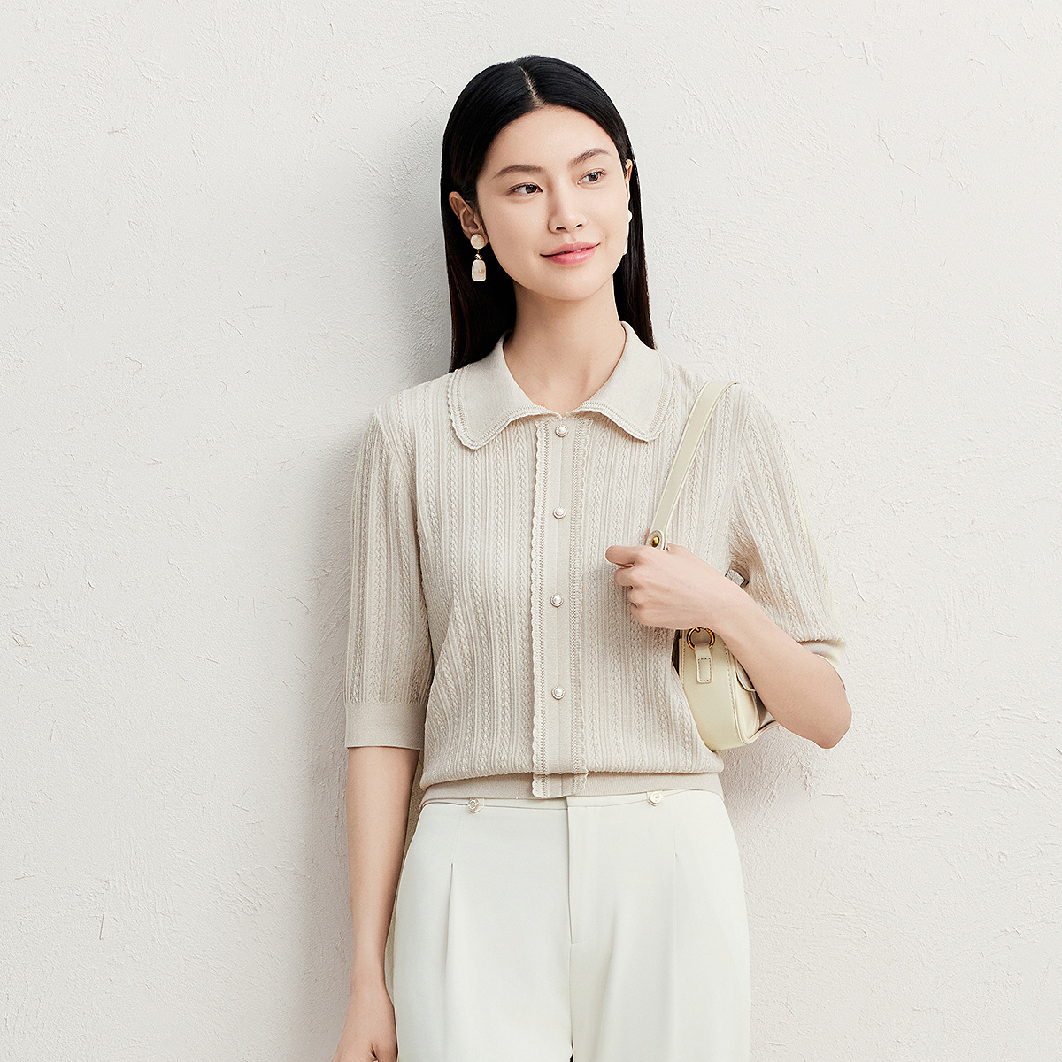 领气质减龄短袖 FINITY菲妮迪针织衫 简约衬衫 新款 上衣女 2025年秋季