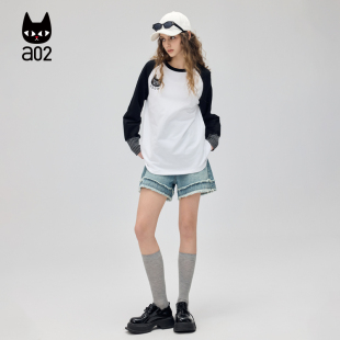 猫猫刺绣设计感秋装 a02纯棉插肩袖 新款 T恤女2025年秋季 上衣 长袖