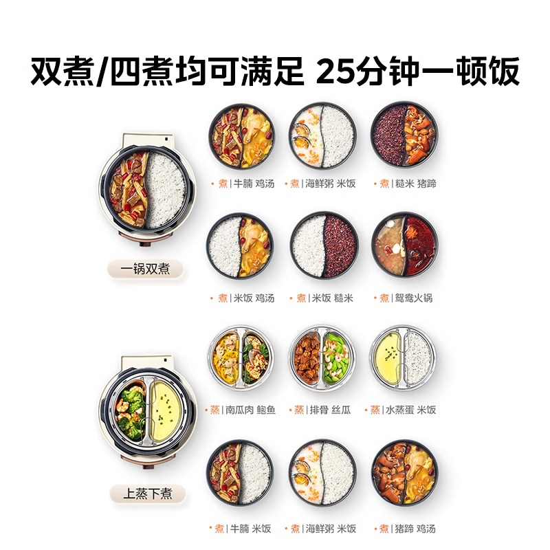 美 全自动鸳鸯双胆4L高压锅饭煲 电压力锅家用小型多功能智能新款