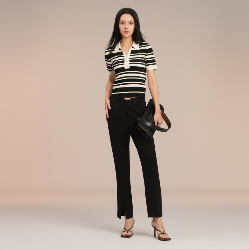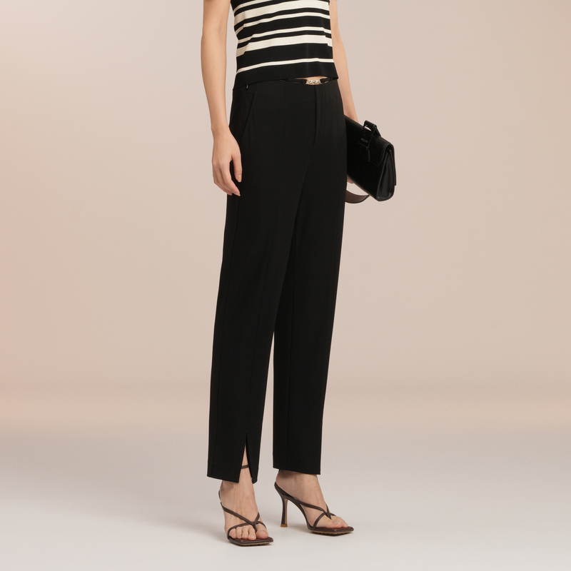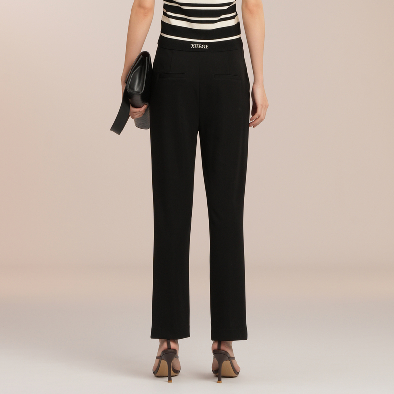 简约显瘦微喇开叉九分裤 XG雪歌黑色休闲裤 时尚 新款 女 2025夏季
