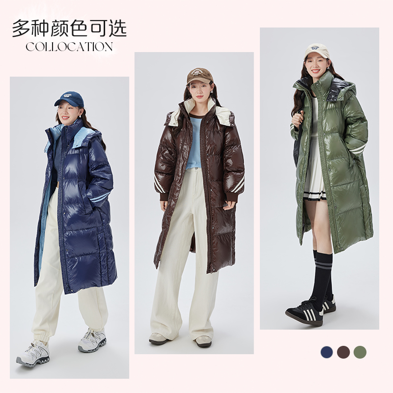 亮色运动户外可脱卸帽长款 艾莱依户外羽绒服女爆款 外套冬 直播