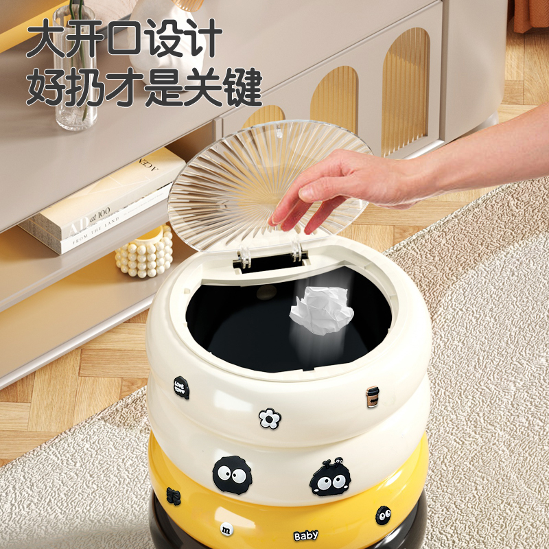 厨房垃圾桶家用2025新款 卧室客厅卫生间厕所大容量纸篓高颜值带轮
