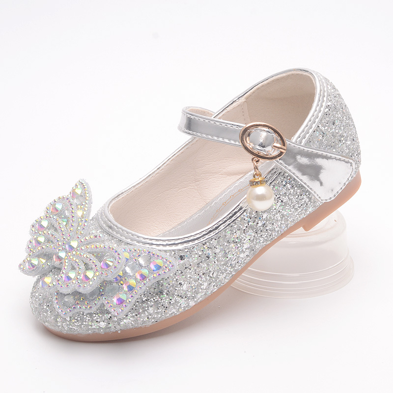 女童艾莎鞋 软底学生皮鞋 春秋新款 女银色水晶单鞋 儿童小皮鞋 公主鞋