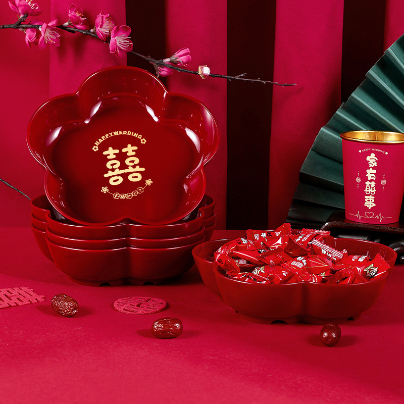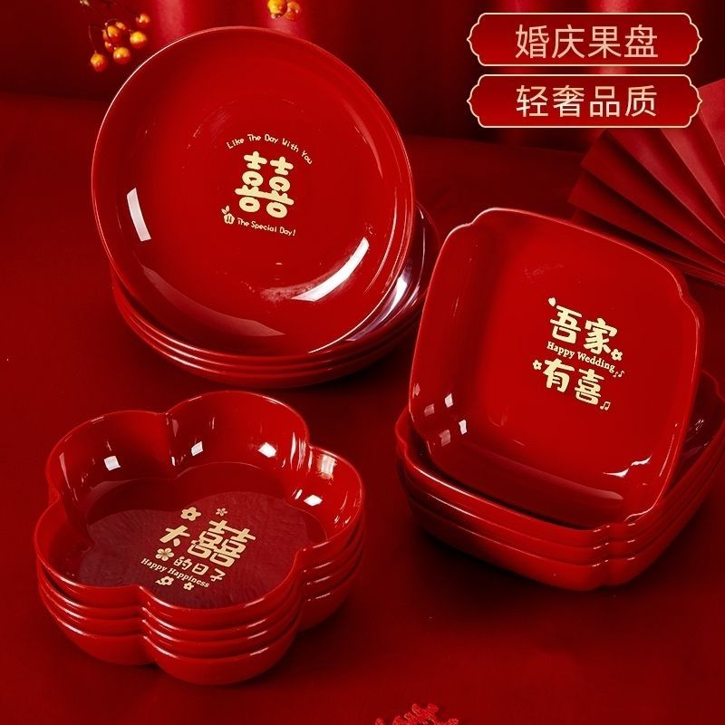 结婚果盘干果盘喜糖盘子婚礼专用红色订婚喜盘子网红婚庆用品大全
