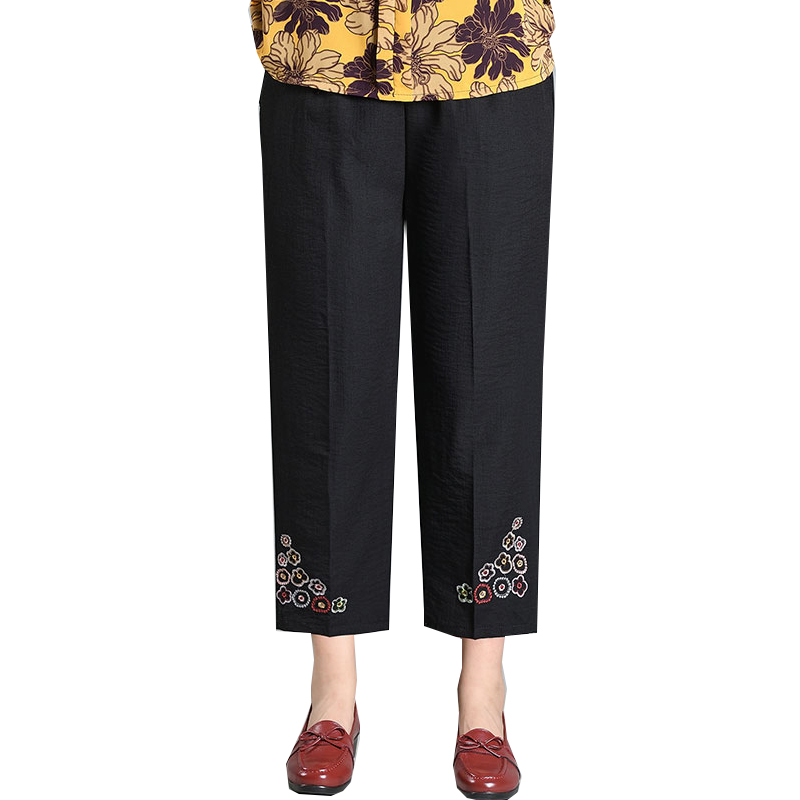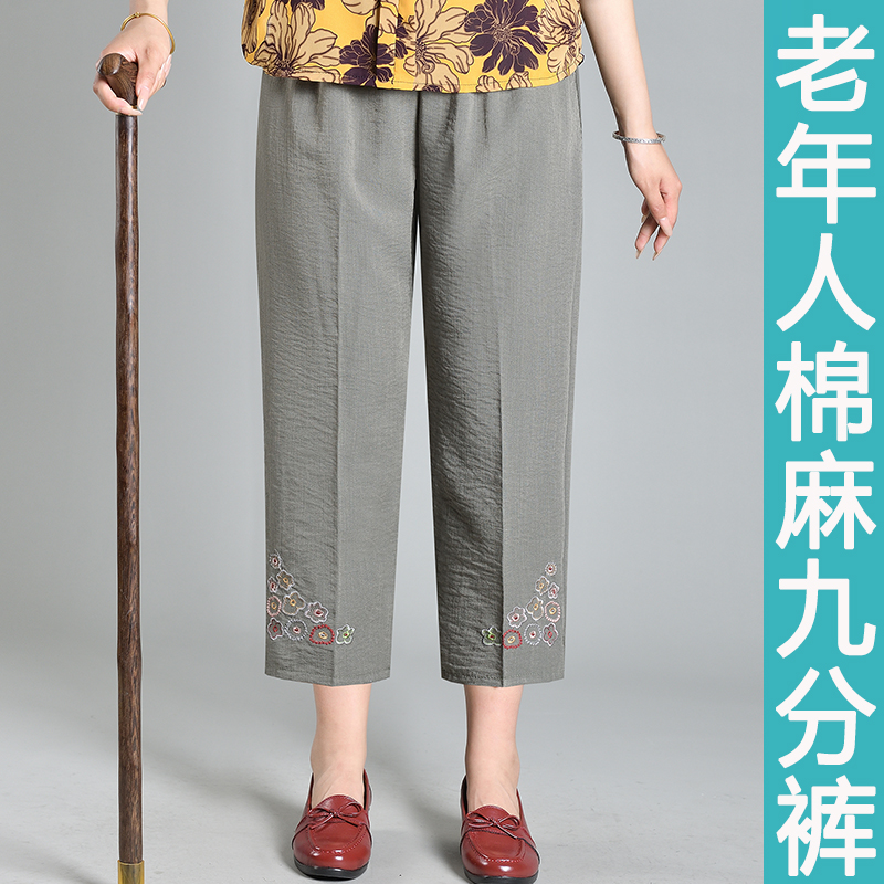 九分裤 薄款 宽松直筒女裤 加大码 中老年人妈妈棉麻裤 奶奶裤 子夏季