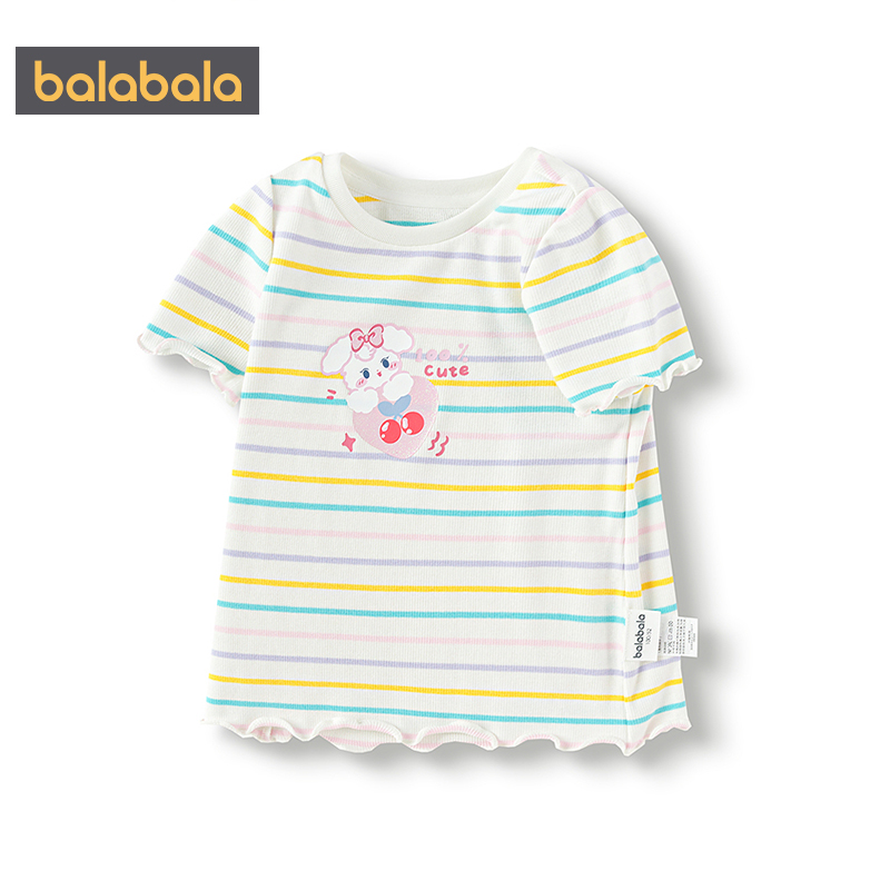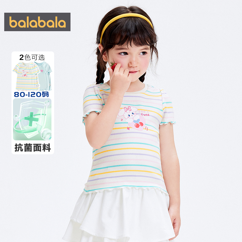 儿童打底衫 巴拉巴拉女童短袖 童装 新款 薄 t恤婴儿宝宝条纹上衣夏季