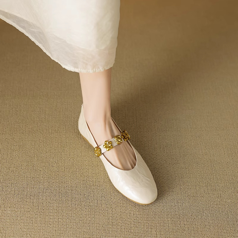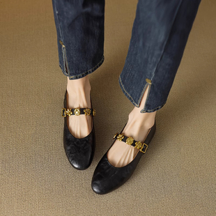 一字扣带法式 软底鞋 平底浅口单鞋 新款 子 女2025春季 山茶花玛丽珍鞋