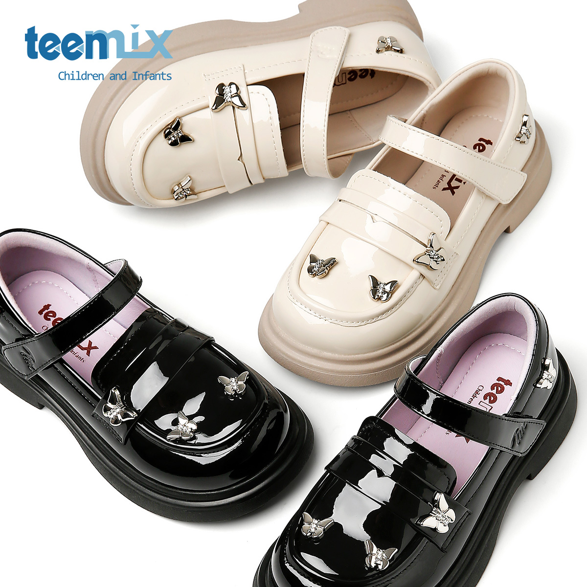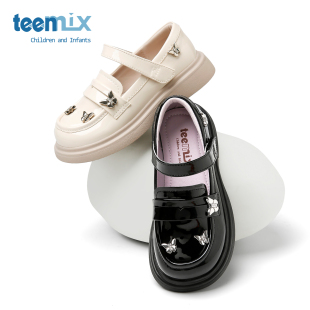 英伦风小白皮鞋 teenmix2025年新款 公主鞋 儿童单鞋 女童黑色小皮鞋