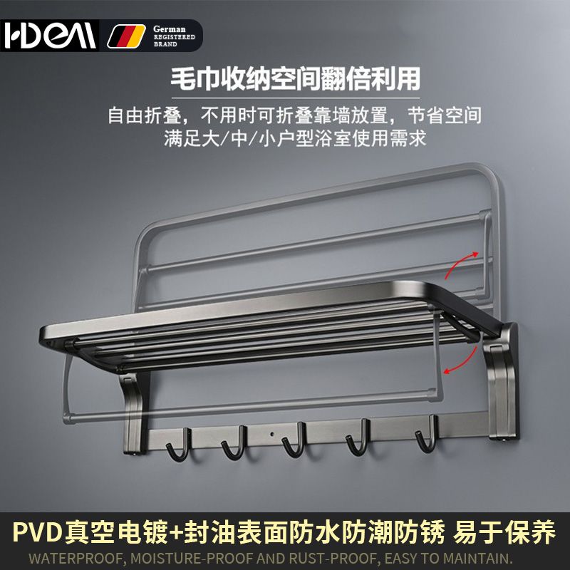 德国海德曼枪灰色毛巾架卫生间浴巾架浴室置物架卫浴毛巾杆收纳架