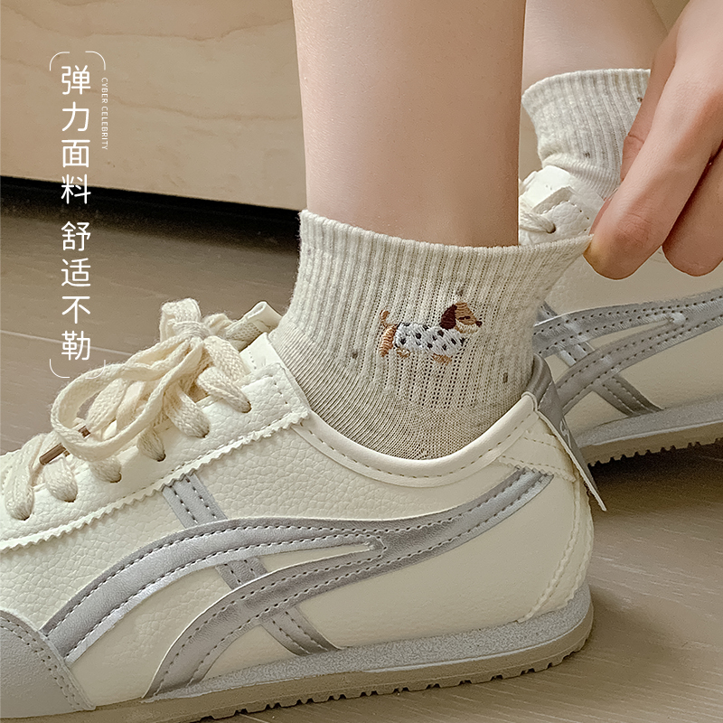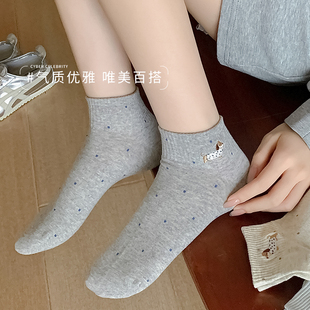 全棉短袜子女春秋季 中短筒袜无骨 纯棉吸汗防臭夏透气运动风秋冬款