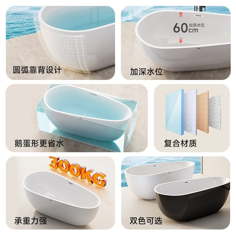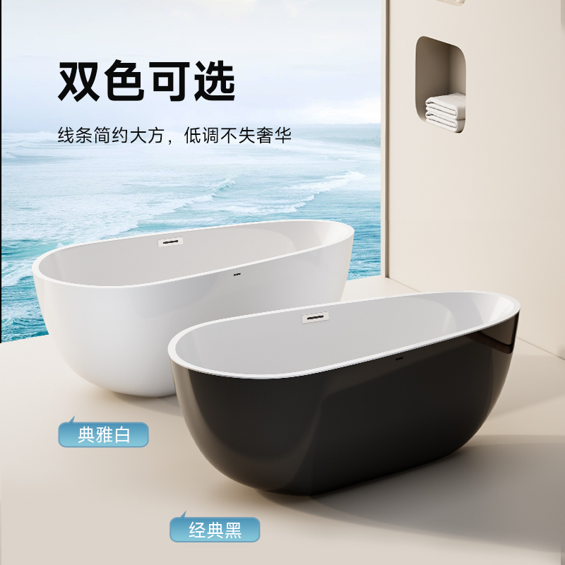 浴缸浴盆亚克力鹅蛋 浪鲸深泡家用小户型薄边独立式 国补立减