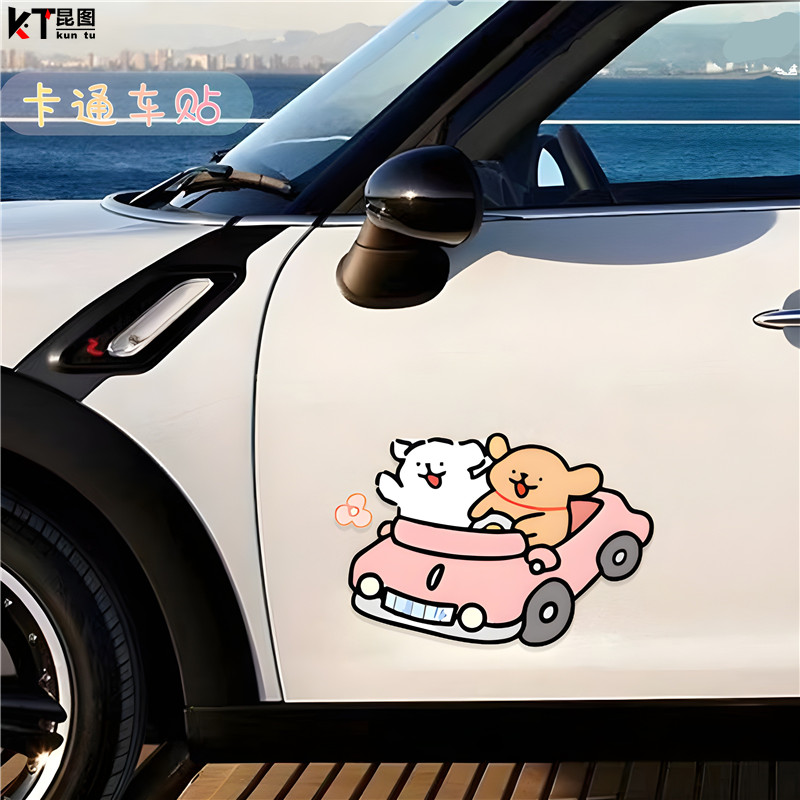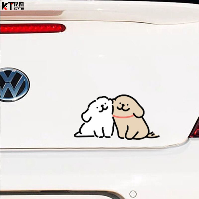 卡通个性 饰贴电动车油箱盖车身两侧遮挡划痕贴防水 创意可爱小狗装
