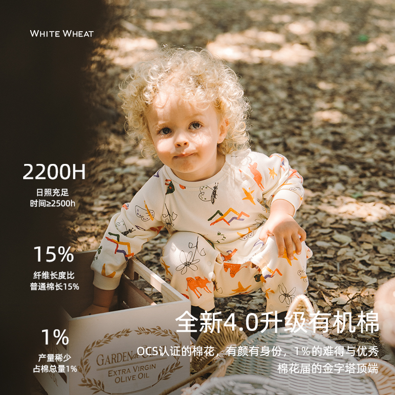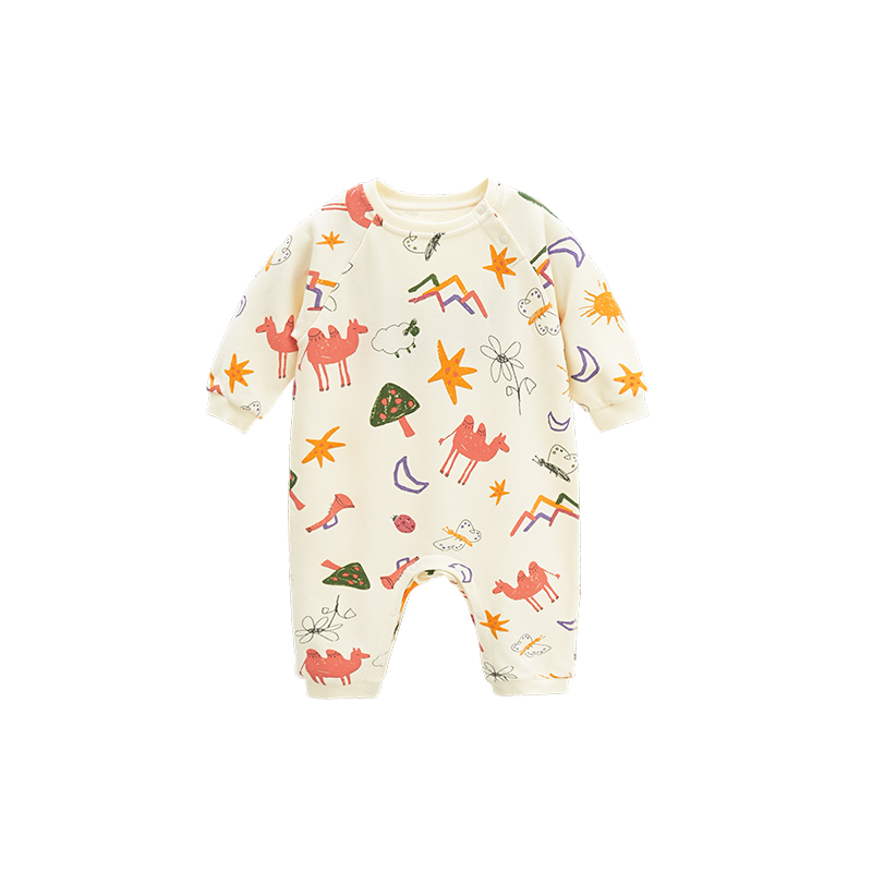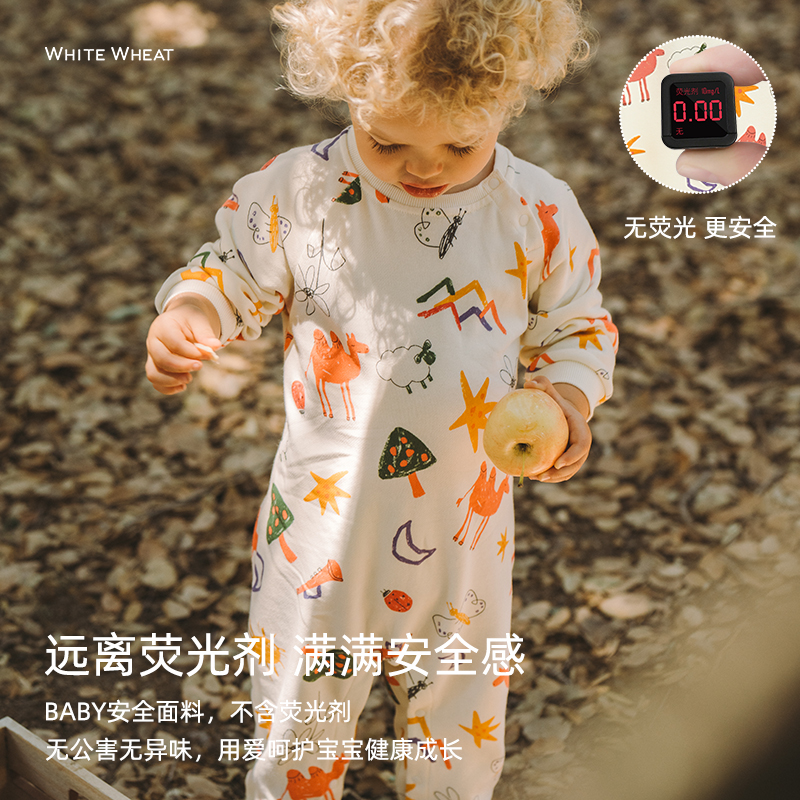 whitewheat新生婴儿2025春秋新款 纯棉爬服手绘 连体衣男女宝宝秋季