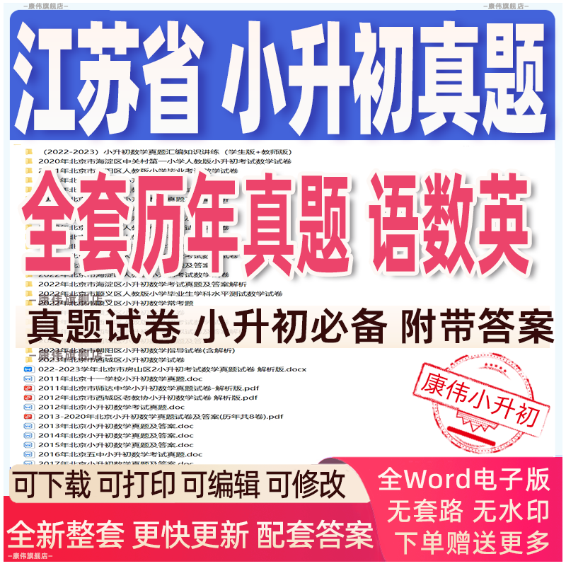 2024年江苏省小升初历年真题试卷语文数学英语电子版 习题小学六年级上册下册Word试题解析答案总复习南京苏州徐州无锡宿迁泰州常州