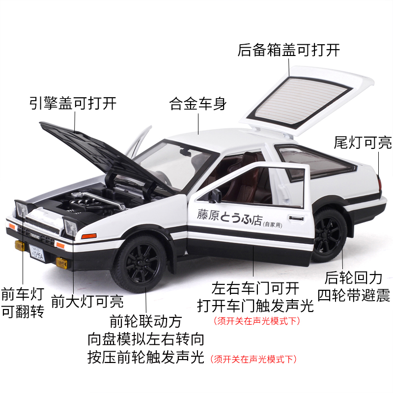 金属丰田AE86合金1 30头文字D转向避震仿真汽车模型儿童玩具车