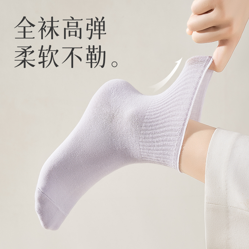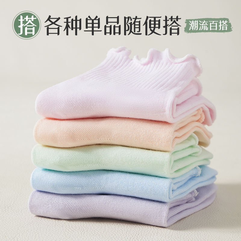 中筒袜 透气吸汗木耳花边松口不勒棉袜白色纯色女款 袜子女夏季 薄款