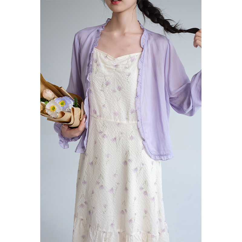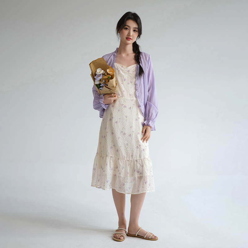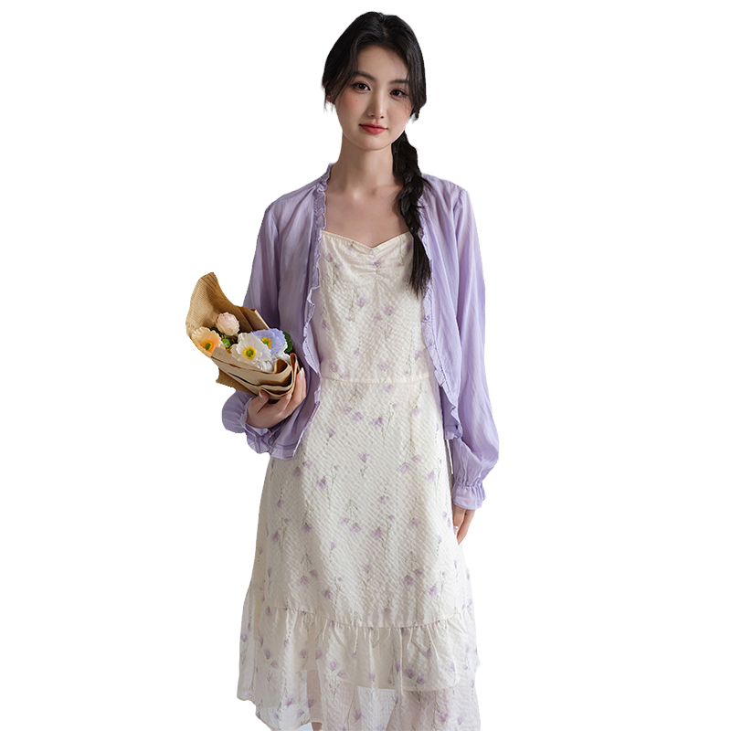 女装 外搭开衫 法式 胖mm夏新款 两件套 度假吊带连衣裙套装 蓝若水大码