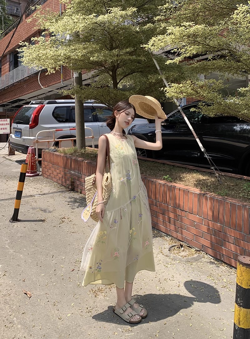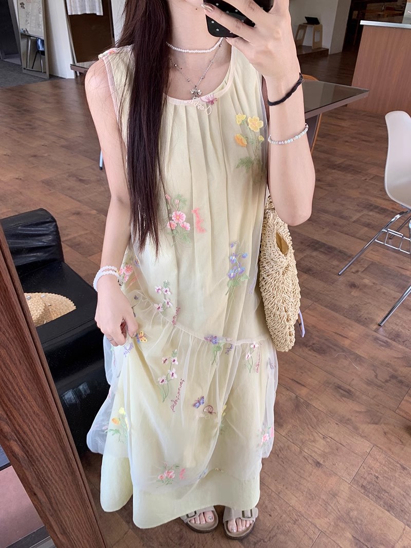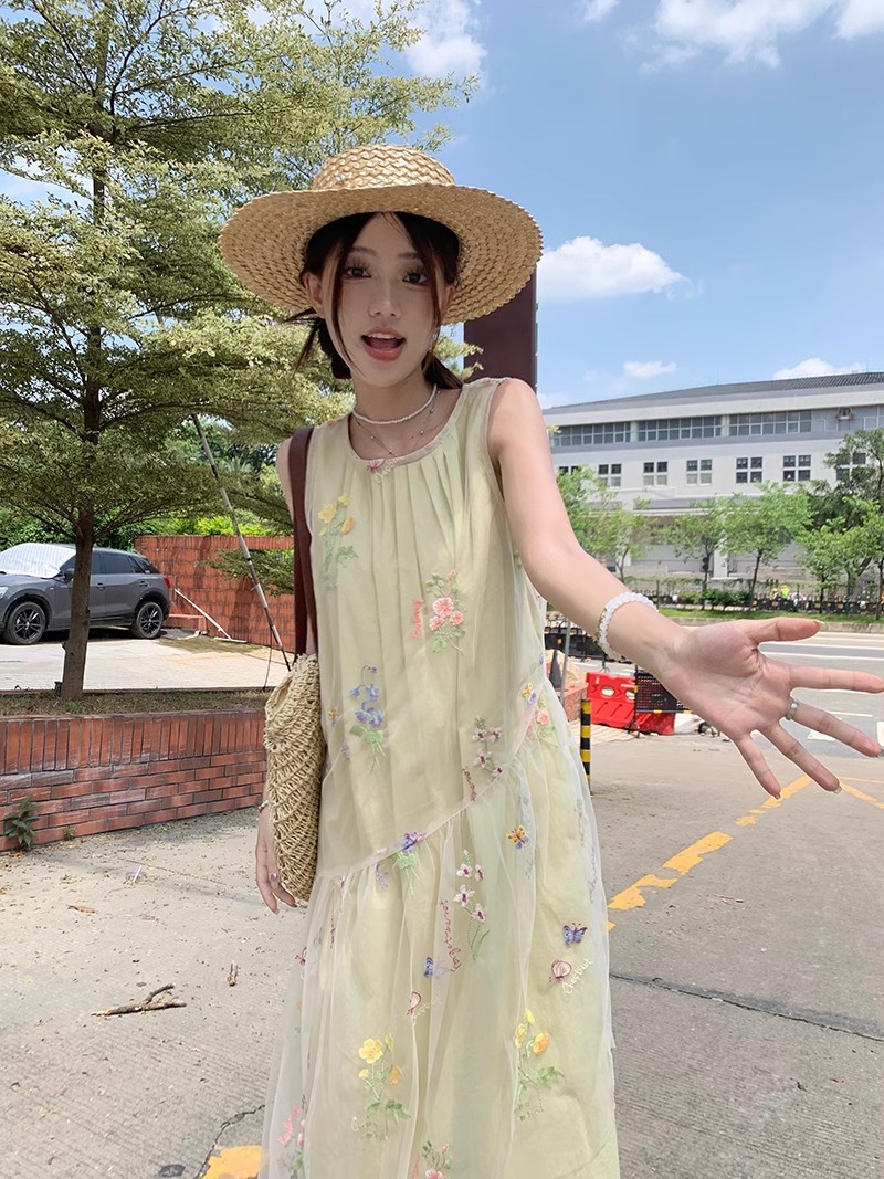 甜美小清新宽松显瘦罩衫 森系温柔风刺绣超仙连衣裙女新款 现货