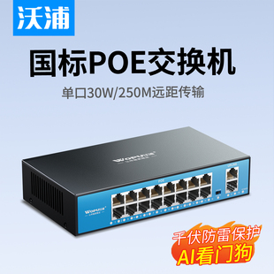 沃浦poe交换机监控专用4口10口16口24口国标48V百兆千兆网络摄像头供电模块网络摄像头千兆汇聚光纤交换器