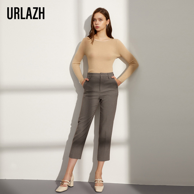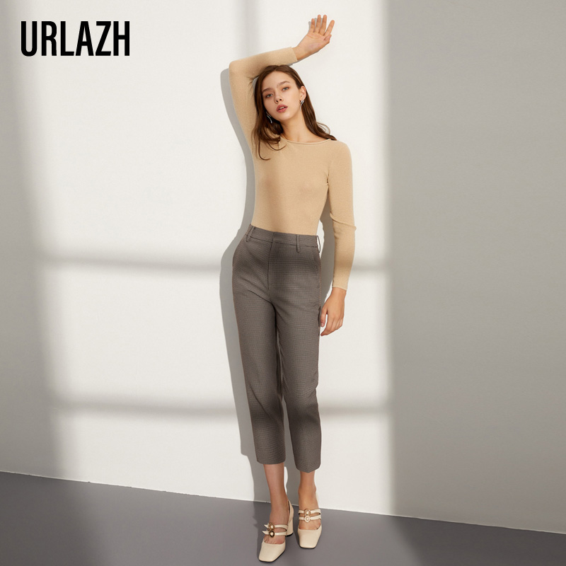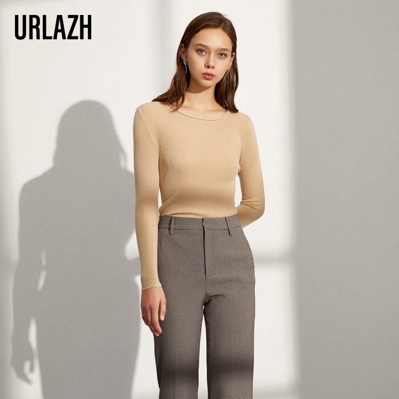URLAZH有兰新款 女 鎏金色针织毛衣低领优雅舒适百搭打底衫