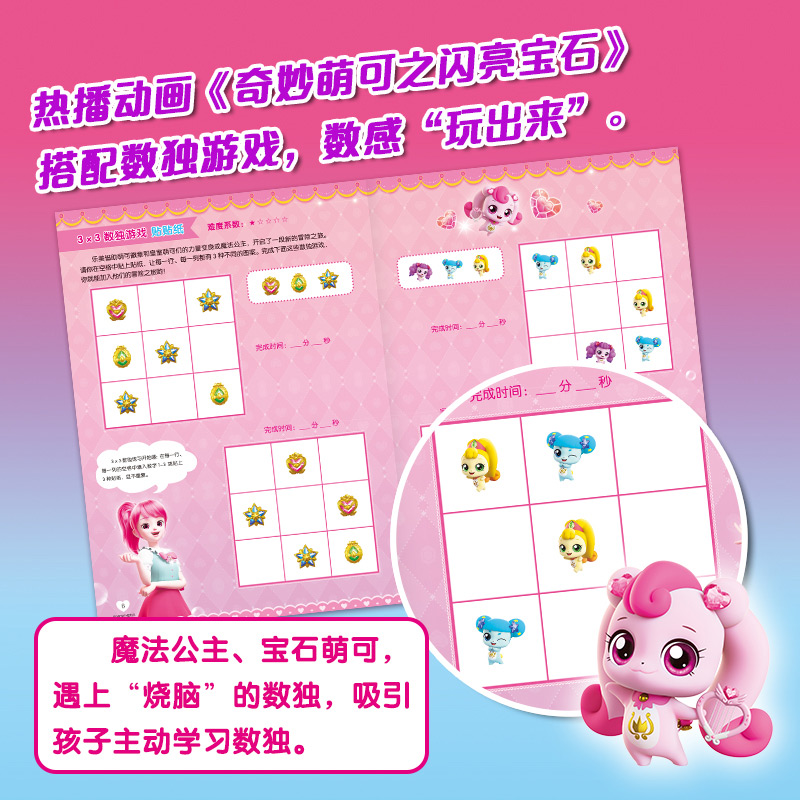 数独游戏贴纸书 全脑开发专注力思维训练书幼儿园益智早教粘贴纸3 7岁四宫六宫格九宫格数独书 全套4册奇妙萌可之闪亮宝石