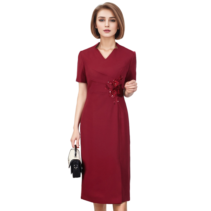 菲梦伊钉珠花朵连衣裙女夏装 轻薄设计感收腰显瘦百褶长裙 飘逸时尚