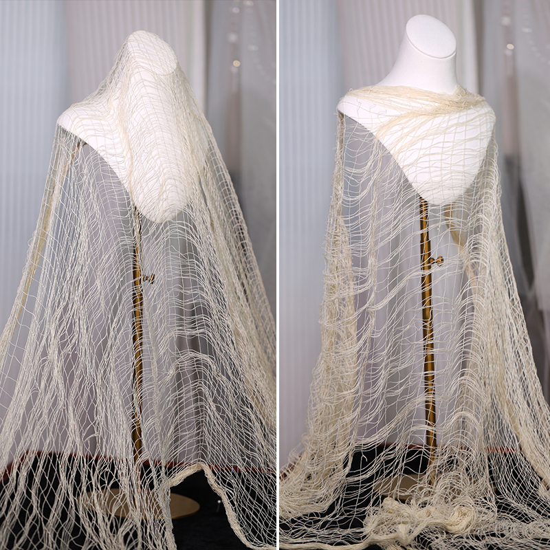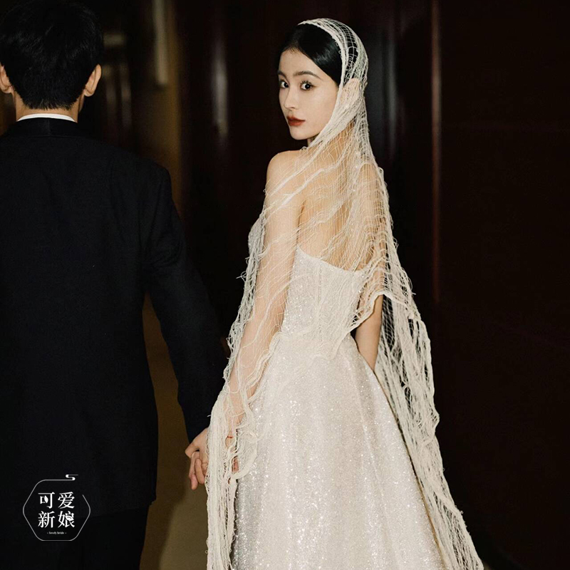 新娘米色废土风网纱头饰复古小众镂空网格披肩高级感凹造型头纱