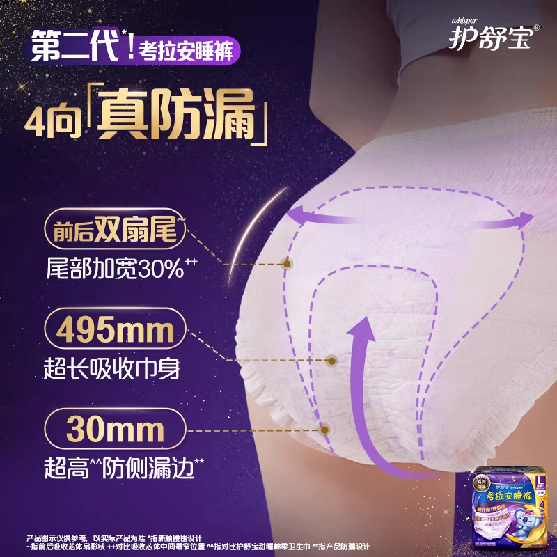 考拉裤 官方正品 型卫生巾超薄防漏夜用姨妈 L码 安心裤 护舒宝安睡裤