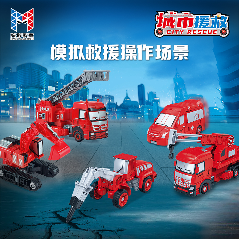 新乐新城市救援儿童玩具云梯车变形登岩战士机甲机器人金刚男孩