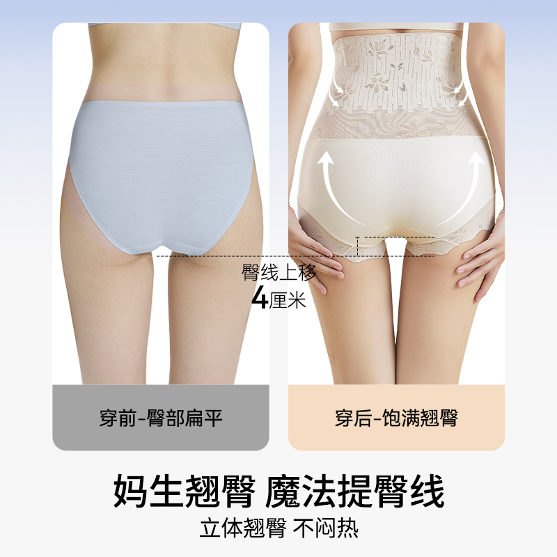 婷美聚乳酸抑菌收腹提臀裤 女士 收小肚子强力翘臀产后塑形高腰内裤