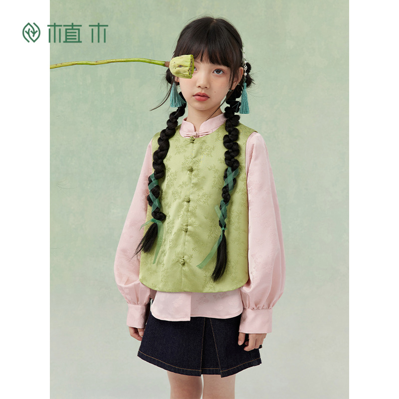 上衣 盘扣女童马甲儿童衣服外穿中大童秋冬2025新款 植木童装 新中式