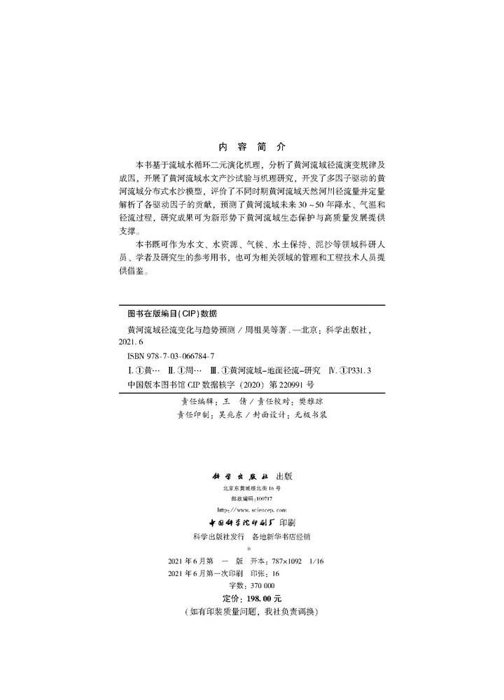 黄河流域径流变化与趋势预测周祖昊本科及以上黄河流域地面径流研究自然科学书籍KX 京联