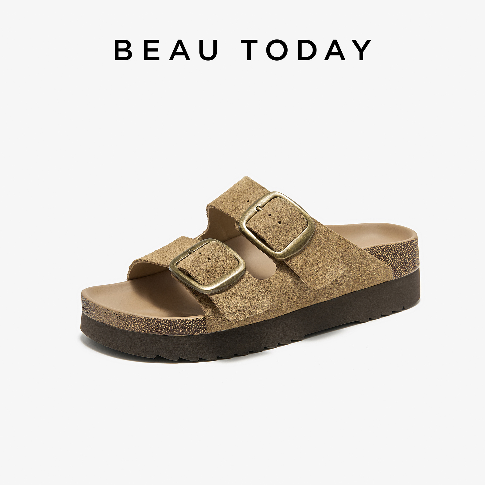 女复古休闲凉鞋 BeauToday真皮勃肯凉鞋 厚底增高罗马凉鞋 夏季 女款