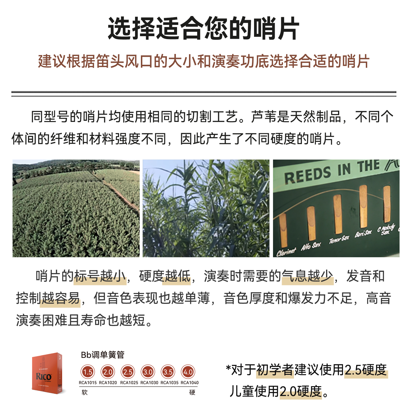 10片 达达里奥 2.5号 RCA系列2.0号 3片 Rico黄盒降B调单簧管哨片