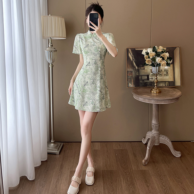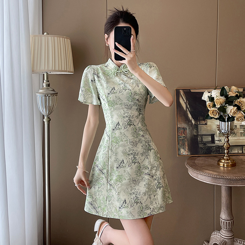 新中式 国风气质收腰显瘦A字裙 改良旗袍连衣裙女小个子年轻少女款
