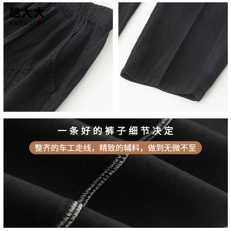 纯棉宽松胖mm直筒裤 酷太太2025夏季 中老年女裤 休闲妈妈九分裤 薄款