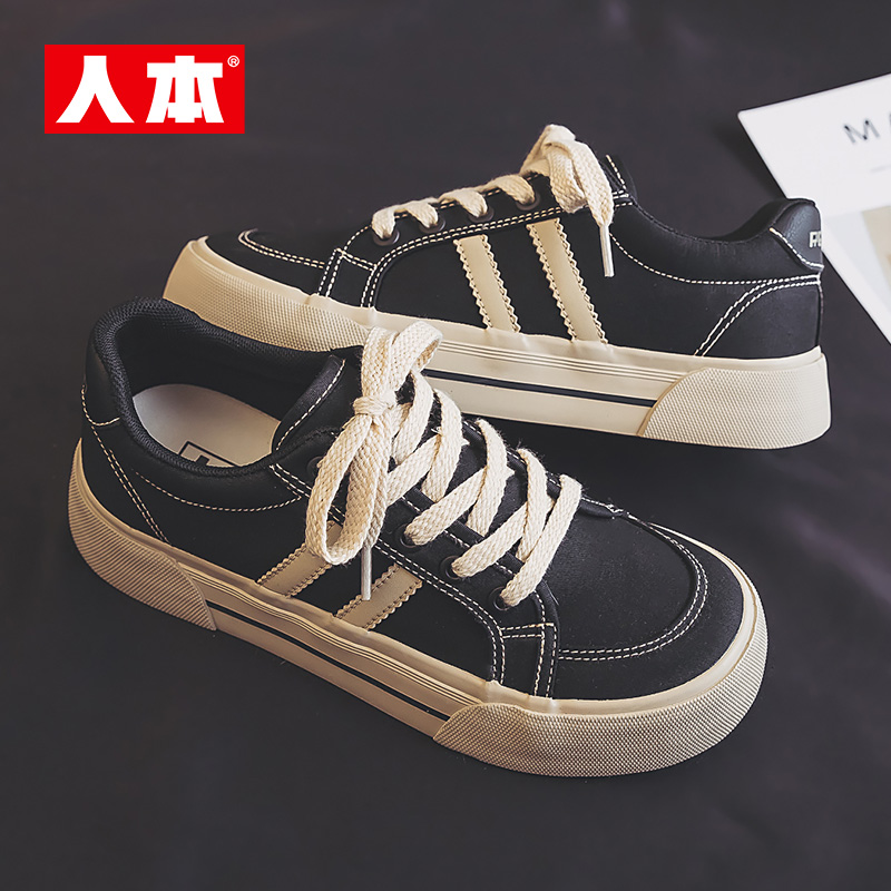 百搭学生休闲运动小众厚底板鞋 新款 子女2025年秋季 环球黑色帆布鞋