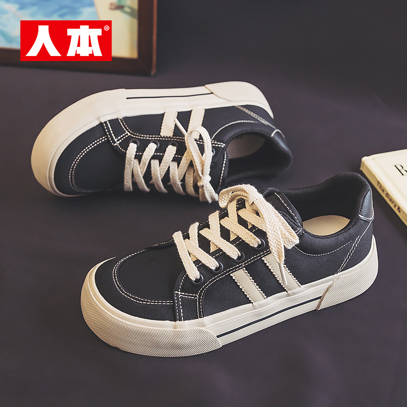 学生休闲运动百搭情侣板鞋 环球厚底黑色帆布鞋 新款 2025秋季 男 男款
