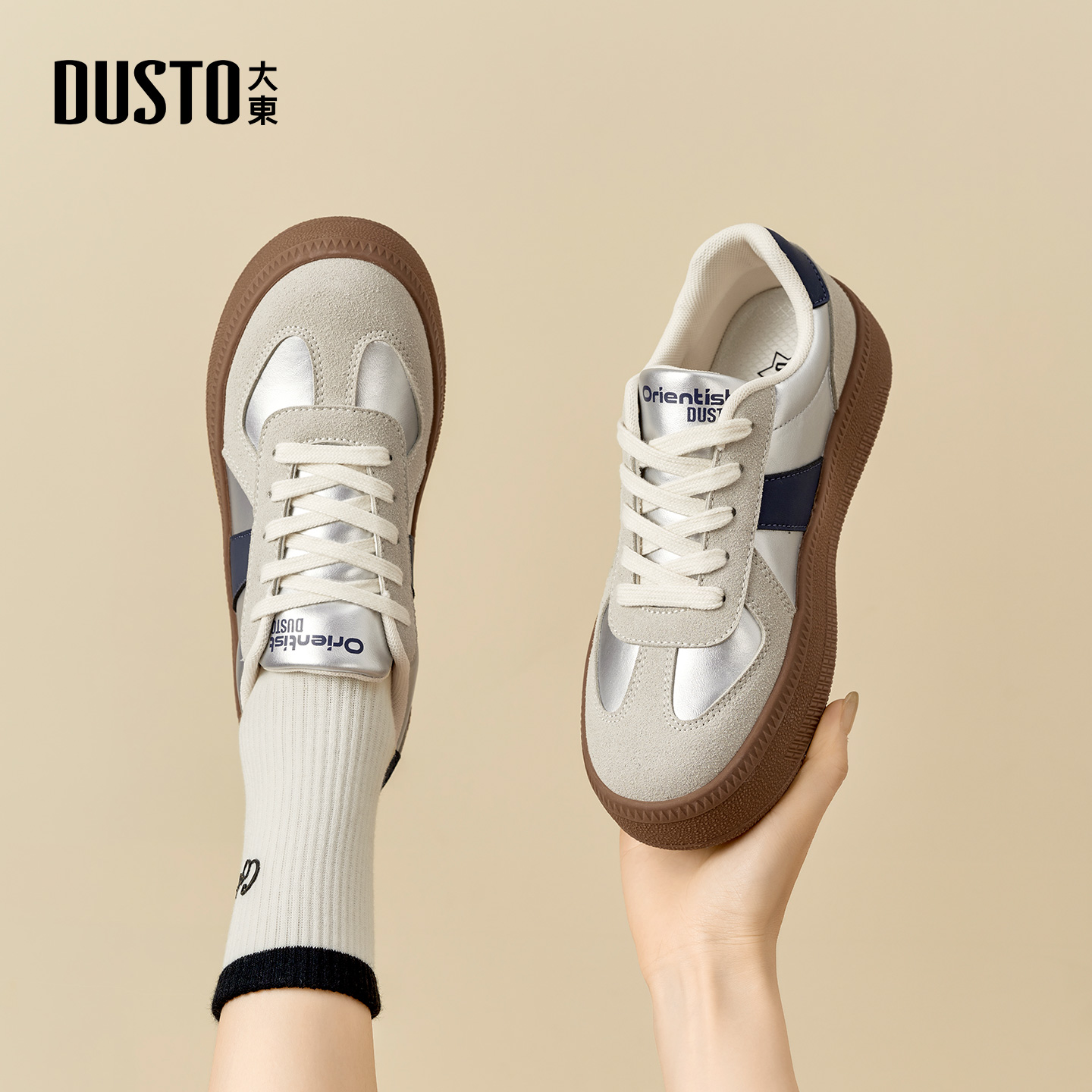 德训鞋 板鞋 女2025新款 休闲厚底复古银色平底女款 7562 春季 大东女鞋