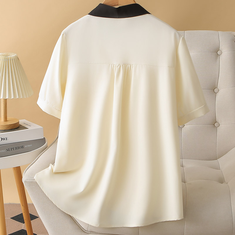 夏装 撞色法式 短袖 大码 胖mm今年流行设计感雪纺衫 2025新款 衬衫 女装