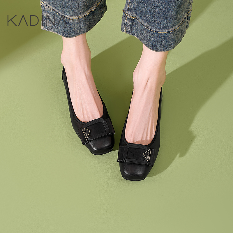 绝美气质通勤平底鞋 小个子内增高裸色方扣浅口单鞋 女2025春夏新款