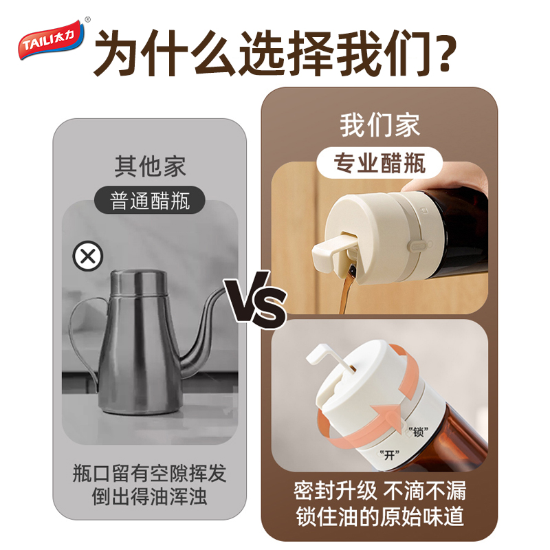 太力新款 醋壶家用漂亮食品级玻璃密封厨房专用酱油醋瓶油壶调料瓶