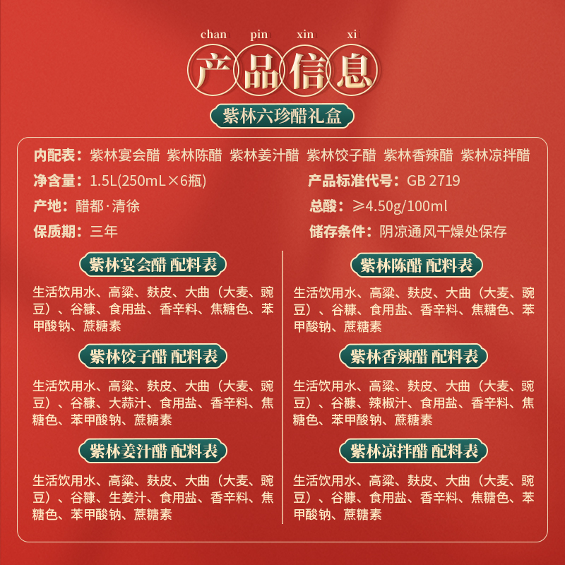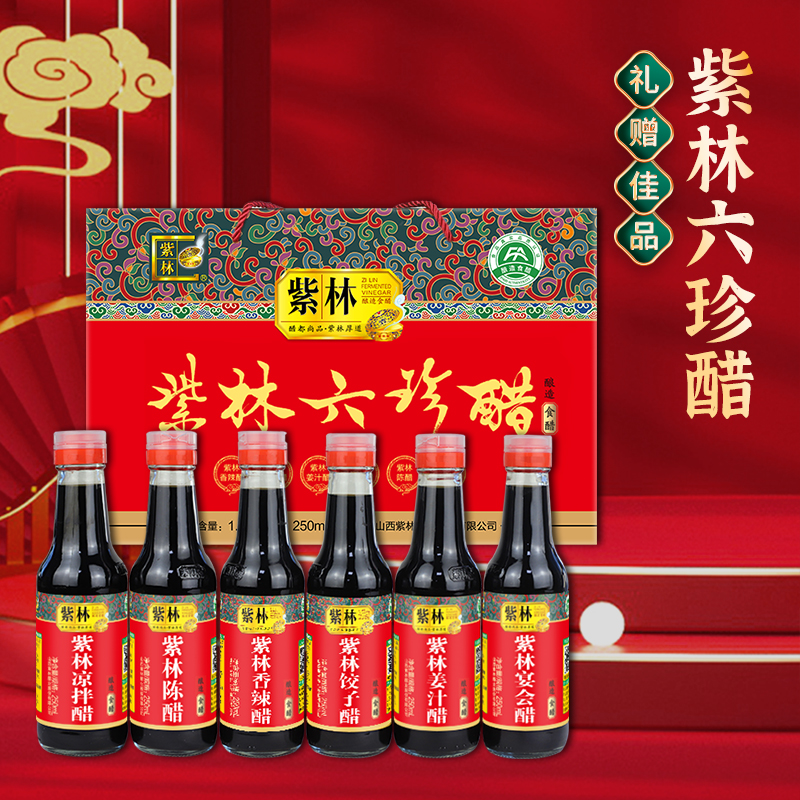 紫林山西六珍醋礼盒250ml 礼品醋山西特产陈醋年货送礼 6瓶装