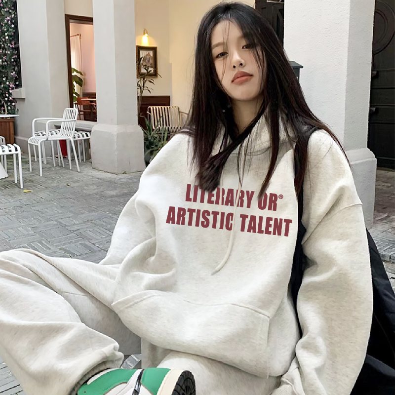 2025秋冬新款 韩系慵懒风字母灰白色连帽卫衣女宽松加绒加厚外套潮