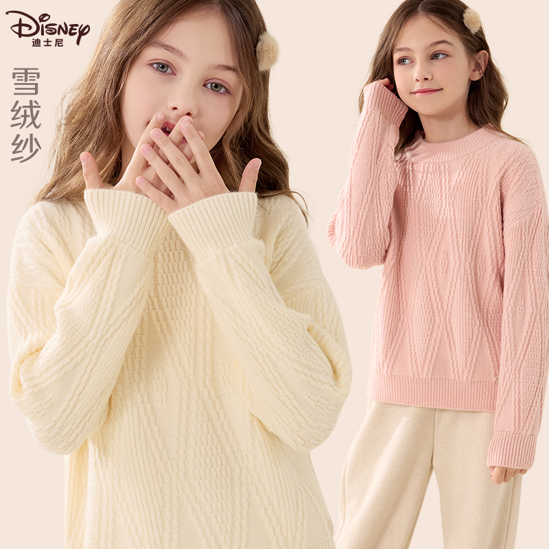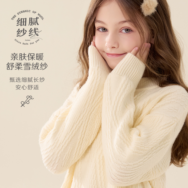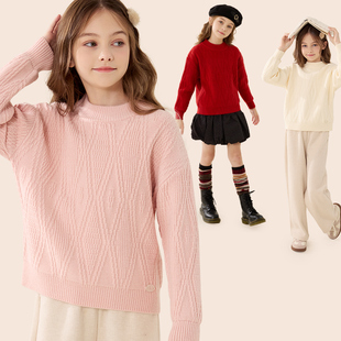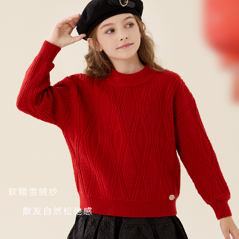 中大童毛线上衣洋气保暖红色童装 女童毛衣秋冬新款 儿童针织打底衫