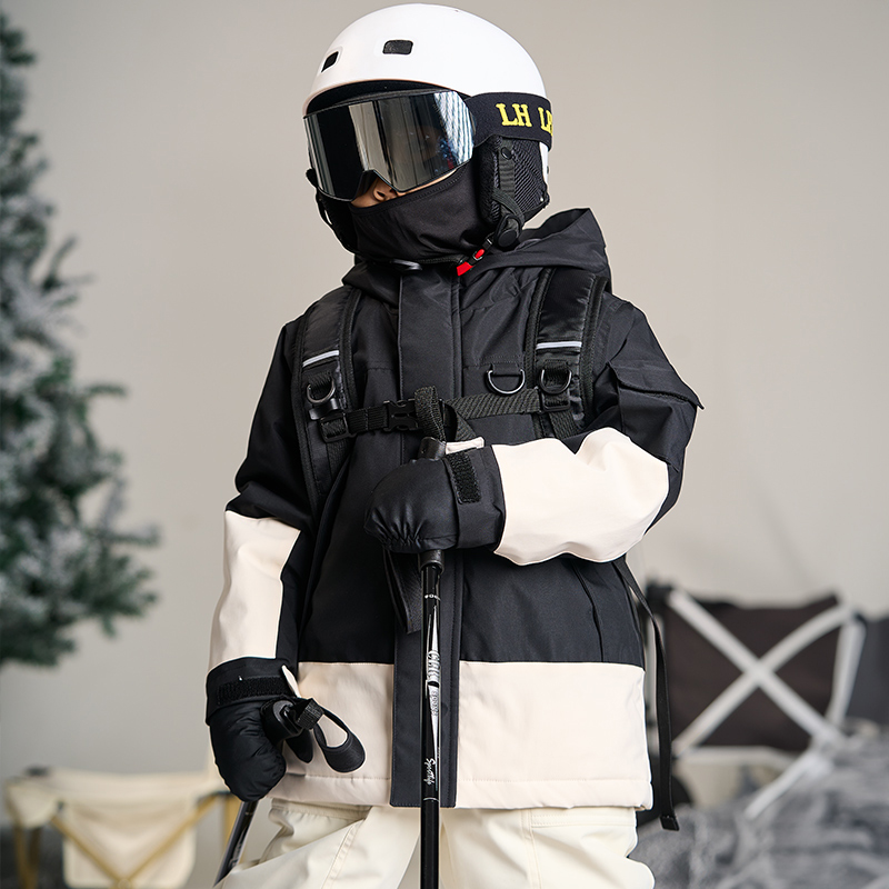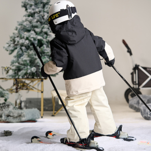 儿童户外强防水透气滑雪服夹棉加厚三合一冲锋衣套装 备 男童雪乡装
