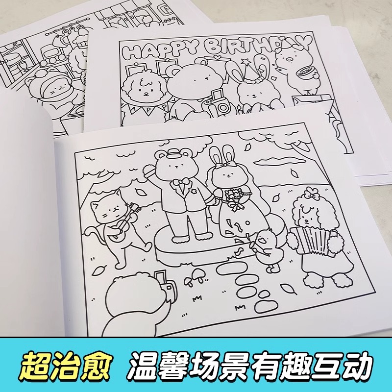 squad2 lovely 可爱小分队2涂色书 love 可爱治愈解压涂画填色本成人孕妇减压解压绘本涂鸦画画书小学生 louder系列 官方正版